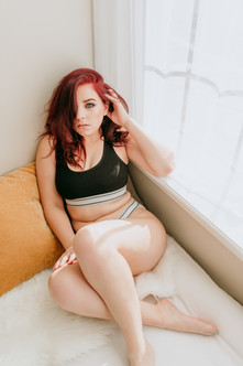 This was our very FIRST session in our brand new studio in January. What I love about boudoir is the ability to document the raw energy of each client. The session can look and feel any way you want- we can listen to 70s folk and you can wear cutoffs and a feminine and boho crop top, or you can be in a fishnet bodysuit listening to Cardi. Guess which one Sarah chose hehe. My favorite thing about this session was playing with full sun...the studio has SO many options for light, angles and posing.